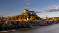 Het uitzicht op het kasteel in Burghausen is genomen vanaf de Oostenrijkse kant
