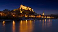 Het uitzicht op het kasteel in Burghausen is genomen vanaf de Oostenrijkse kant