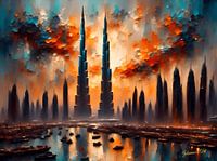 Wees getuige van de magie van de Burj Khalifa terwijl de zon de hemel schildert in gouden tinten. Dit fascinerende kunstwerk vangt de iconische wolkenkrabber in al zijn glorie, een glinsterend baken tegen de achtergrond van de woestijn. Voel de energie en dynamiek van Dubai als de dag overgaat in de nacht. Laat dit kunstwerk je reislust aanwakkeren en je dromen over stedelijk avontuur inspireren. Dit is meer dan kunst alleen; het is een portaal naar het hart van de moderne wereld.