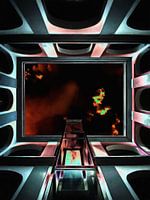 Burning Sky abstract digitale gouache schilderij met vensters van gebouw met brandende lucht