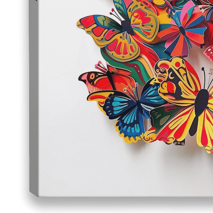 Een bonte verzameling kleurrijke kartonnen vlinders.