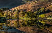 Buttermere is een meer in Lake District, een nationaal park in het graafschap Cumbria in het noordwesten van Engeland. Aan de zuidkant van het meer staat een iconische rij dennenbomen. Er loopt een wandelpad rondom het meer, en soms is het water zo stil dat het omringende landschap prachtig gereflecteerd wordt in het water.