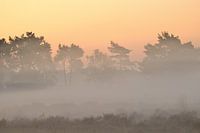De zon is nog net niet te zien op de heidevlakte van Buurserzand