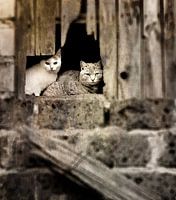 Twee katjes op de hooizolder.
