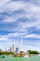 Chicago is een stad aan de zuidwestkust van het Michiganmeer in de staat Illinois/USA. Hier ziet u de Buckingham Fontein voor de skyline van het centrum.