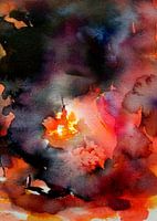 In dit werk en miniatuurwereldje 'CLOUDBURST' laat ik in een gelaagde collage werelden samenkomen en -vloeien. Enerzijds door de gebruikte kunstvormen als aquarel, fotografie en digitale techniek, anderzijds zijn er de werelden, luchten, hemelen, zeeën en tijden die doorkruist, overgestoken en gepasseerd zijn in alle mogelijke vormen, zowel emotioneel, spiritueel , psychisch als fysiek. Toch telkens weer komt het grote samen en loopt het over in het kostbaar want kwetsbaar kleine als juist in die kleur, die lichtval, diepte of vorm waarin weer cirkels rond mogen worden. En weer één geheel vormt. Ook hier gaan onhoorbaar stille, eigen werelden schuil achter het zichtbaar, schijnbaar alledaagse van een bekende horizon, hemel en tijdslijn. Hier komen zon, zee, aarde, land, lucht en tijden samen.