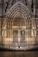 Fragment van de verlichte zuidgevel van de beroemde gotische kathedraal in Keulen (Köln), Duitsland