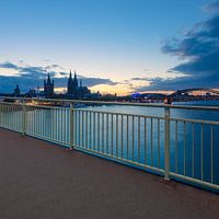 Keulen (Köln), Duitsland - Stadsgezicht en de Rijn bij schemering