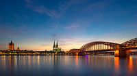 Keulen (Köln), Duitsland - Skyline van de stad en de Rijn op het blauwe uur