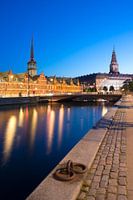 Skyline van Kopenhagen met de beurs (Børsen) en paleis Christiansborg, Denemarken