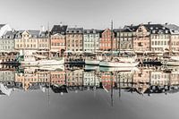 Nyhavn in het hart van Kopenhagen was vroeger een drukke handelshaven. Wat rest zijn de prachtige oude huizen. In de ochtend kunt u genieten van de rust aan het water en komt de weerspiegeling van de kleurrijke gevels op het kalme water tot zijn recht. Het stadsgezicht wordt kleurrijk gepresenteerd in een prachtig gereduceerd vintage…