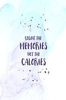 Te veel gegeten? Hoe dan ook, geniet er nu van en wees een andere keer wat verstandiger. COUNT THE MEMORIES NOT THE CALORIES. TEL DE HERINNERINGEN, NIET DE CALORIEËN. Minimalistische typografie met een vleugje felle kleur maakt je dag zoet.