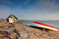 Kleine houten hut bij de zee, Smögen, Bohuslän, Zweden