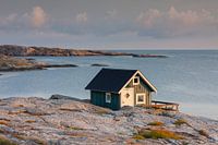 Kleine houten hut bij de zee, Smögen, Bohuslän, Zweden