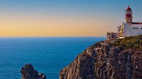 Vuurtoren bij Cabo de Sao Vicente in Portugal bij zonsondergang