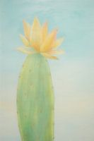 Een kleurrijk digitaal schilderij van een pastel cactus in bloei. Het werk geeft een dromerige en klassieke uitstraling aan uw interieur!
