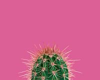 Grüner stacheliger Kaktus auf einem neonrosa Hintergrund