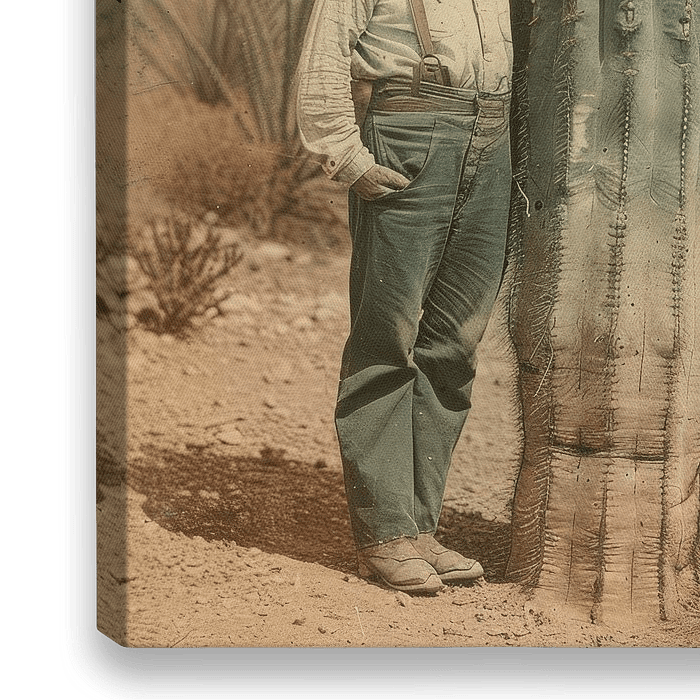 Cactus King. Vintage foto, digitaal ingekleurd van een trotse man met zijn megagrote cactus. Een werk met humor! Kies zelf het formaat bij deze bijzondere blikvanger.