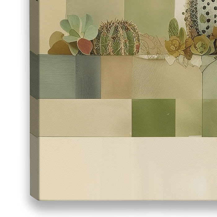 Dit werk vangt de abstracte schoonheid van een cactus op een moderne en creatieve manier. Met gedurfde vormen en contrasterende kleuren biedt het een frisse kijk op de klassieke plant. De scherpe lijnen en speelse compositie zorgen voor een dynamisch en intrigerend geheel dat elke kamer een eigentijdse uitstraling geeft.