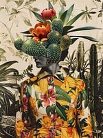 Vintage collage portret van een vrouw met cactus in haar hoofd, retro kunst.