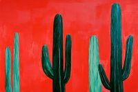 Een levendig samenspel van levendige rode en groene cactussen creëert een spannende sfeer die de aandacht trekt. De sculpturale vormen van de cactussen brengen een vleugje woestijn in huis. Dit kunstwerk is ideaal voor de woonkamer en voegt een fris, modern accent en een gevoel van avontuur toe aan elke kamer.
