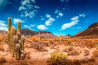 Cactussen in de woestijn in Mexico met blauwe lucht.