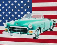 Dit schilderij van de Cadillac Deville uit 1948 voor de Amerikaanse vlag is te koop in verschillende maten en kan zowel op doek als op hout en metaal worden afgedrukt. U kunt het schilderij ook laten afwerken met een acrylplaat die meer diepte geeft.