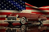 Wat is er Amerikaanser dan een klassieke Cadillac Deville Convertible met de Stars and Stripes op de achtergrond