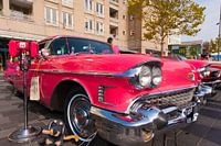 klassieke auto de Cadillac in het roze.de meest geliefde oldtimer van dit moment in Amerika.