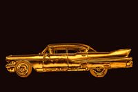 Digitale illustratie van een oude Cadillac in goud op zwart. Deze chique uitstraling is een opkomende trend voor 2022. Mooi te combineren met lampen en kaarshouders in dezelfde kleuren.