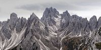 Een 2:1 panorama foto van Cadini di Misurina.De toppen van Cadini di Misurina voelen alsof ze bijna een amfitheater vormen op deze plek in het natuurpark Tre Cime. Als je voor deze prachtige toppen staat, kun je niet anders dan onder de indruk zijn van de schaal van de bergen en de onmetelijke tijd die het kostte om ze vorm te geven.
