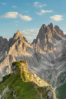 Uitzicht in de richting van de Cadini-groep met talrijke spectaculaire rotspieken en pinakels. De Cadini di Misurina vormen het zuidelijke uiteinde van de Sesto Dolomieten en zijn gelegen in de provincie Belluno in Italië.