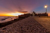 Kasteel San Sebastian bij zonsondergang in Cadiz, Andalusië, Spanje.