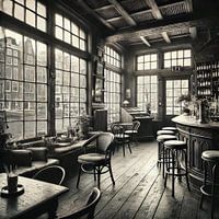 Breng een vleugje tijdloze Amsterdamse charme in huis met deze prachtige zwart-wit foto. Deze afbeelding vangt de rauwe en authentieke sfeer van een Amsterdams cafe, compleet met vintage details en een intieme nostalgische uitstraling. Perfect voor liefhebbers van stedelijke kunst en fotografie met een verhaal.