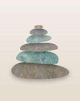 Dit werk, dat deel uitmaakt van een serie van 3, combineert acrylmonoprinting en digitale manipulatie. Zes stenen in aardekleuren zijn opgestapeld om een steenhoop te vormen. De achtergrond is roomwit. Het beeld straalt een gevoel van rust, zen en evenwicht uit.