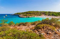 Strandlandschap van Cala S'Amarador prachtige kust bij Mondrago natuurpark op Mallorca Spanje, Balearen, Middellandse Zee