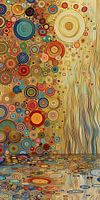 "Caleidoscoop van Reflecties" vangt de essentie van reflectie, zowel letterlijk als figuurlijk, in een stroom van kleurrijke cirkels en patronen die neerdalen in een spiegelachtig oppervlak. De verticale opmaak van dit stuk is bijzonder geschikt voor het toevoegen van visuele hoogte aan een kamer, perfect voor een ruimte met een hoog plafond of een lange muur. De veelheid aan kleuren biedt een dynamische maar harmonieuze uitstraling die een levendige energie in de ruimte brengt. Dit werk biedt een continu veranderend perspectief dat de kijker uitnodigt tot een moment van bezinning en bewondering.