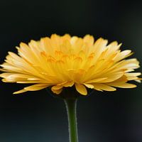 Goudgele goudsbloem de calendula officinalis, groeide volop in de volkstuin. Ik heb er een paar leuke kiekjes van kunnen maken, deze heeft een genuanceerde donkere achtergrond.