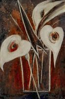 Over ‘Calla bloemen - wit op rood’ van Christine Nöhmeier