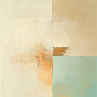 Calm Lines Horizon - Dit abstracte schilderij maakt gebruik van rustgevende aardetinten en geometrische patronen en contrasteert bleke beige en witte vlakken met een helder aquamarijn en roestaccenten.