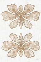 Rustig bloemen kunstwerk op een zachte linnen achtergrond.