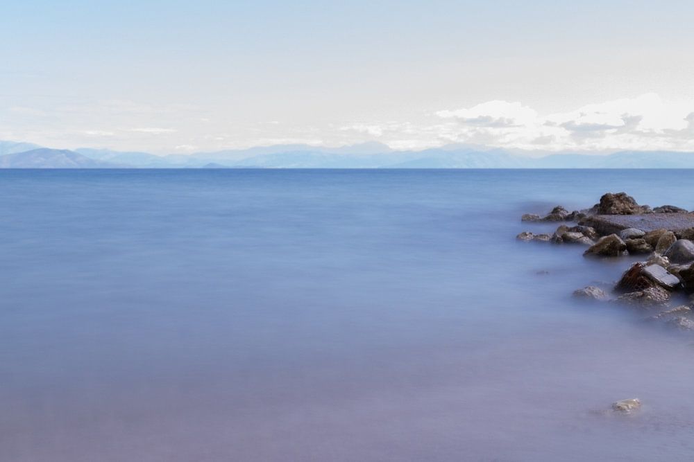 Uitzicht vanaf het eiland Corfu,Griekenland.
