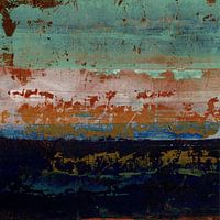 Deze rustieke, abstracte print, aangebracht in verschillende lagen, is geïnspireerd op versleten en verweerde verflagen op muren, boten en dergelijke - het patina van de tijd.