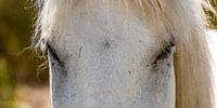 Hoofd en bles met details van het Camargue paard in Camargue Frankrijk