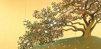 Dit schilderij toont de camelia's van Jizô-in Tempel in de noordelijke wijk van Kyoto, in de volksmond bekend als de Camellia Tempel. Het schilderij richt zich op de dubbelbloemige veelkleurige camelia's waarvan de bloemblaadjes zich individueel verspreiden zoals die van de camellia sasanqua.
