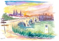 Koop dit schilderij Camino de Santiago Puente de La Reina met bewegwijzering van Markus Bleichner als reproductie geprint op canvas, aluminium dibond, (ingelijste) fotoprint, behang en ArtFrame. Voor jou op maat geprint in Fine-Art kwaliteit.