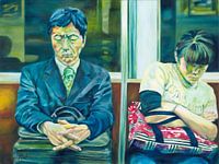 Schilderij Acryl op doek uit de serie "Camouflage" Snapshots van het moderne leven zijn de motieven van de representatieve schilderkunst van Sabine Minten.