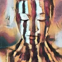 Abstract fantasie schilderij. Portret van een vrouw. Mixed media kunst met grof canvas structuur.