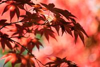 Japanse tuin op het landgoed Clingendael in Den haag. Compositie met bladeren van de Canadese Esdoorn. Sterk bokeh.
