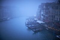 Venetie Canal Grande in de mist. Gondels in mysterieus avondlicht. Magisch Venetie in de winter. Sfeervol